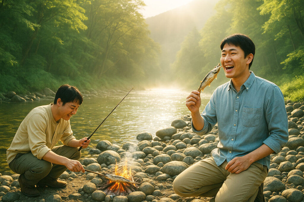 早朝フィッシング: 辺久の清流で魚釣りチャレンジ